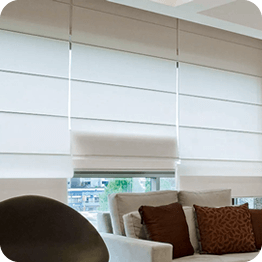 Com seus gomos que se dobram e desdobram, a persiana romana adiciona um toque clássico e aconchegante, disponível em diversos tecidos e texturas.